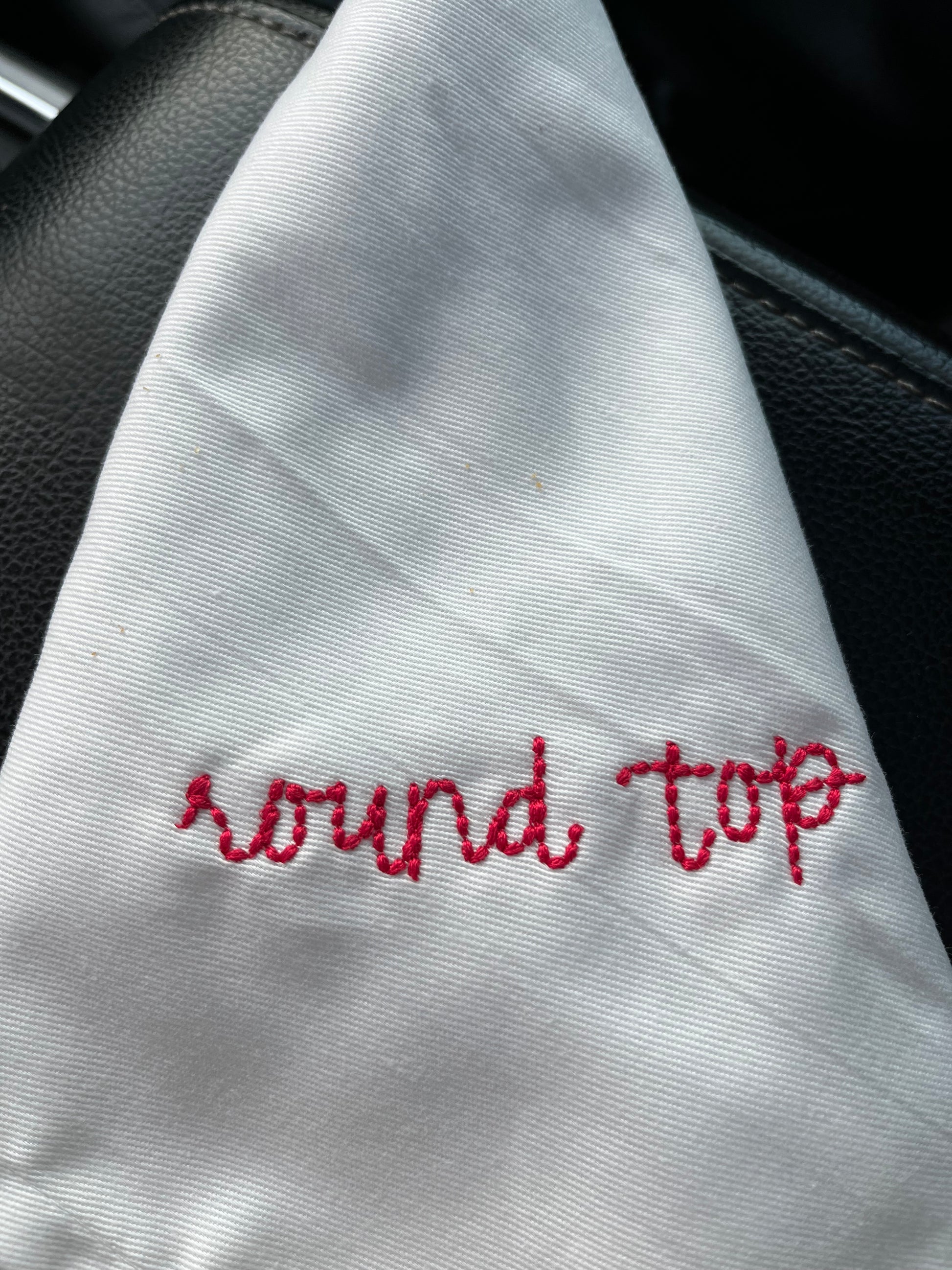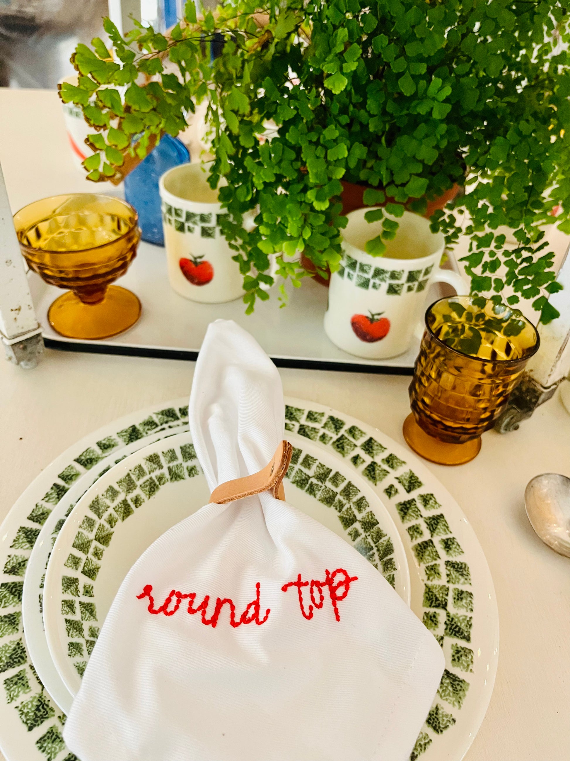 Show your love of the one and only Round Top ar your next dinner. Whether using your finest of china or backyard cookout. Perfect for antique week